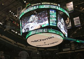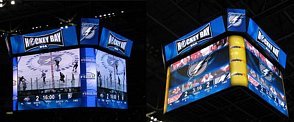 LED multimediální kostky jsou běžným vybavením každého hokejového stadionu a sportovních arén obecně. Přehledné zobrazování informací o zápase, výsledková tabule, inzerce a reklamy, videoklipy, živá kamera včetně opakování záběrů ze hry a řada dalších informací na LED kostce je dnes již samozřejmostí. Každý si tak připadá, jako by seděl v první řadě. Multimediální LED kostky se vyrábějí s různými rozestupy LED diod DIP nebo SMD diod a jsou dodávány jako stavebnice . Možné jsou různé modifikace a úpravy podle požadavků zákazníka. Například mohou být multimediální LED kostky osazeny reproduktory nebo může být zvukový systém v aréně umístněn úplně samostatně.
