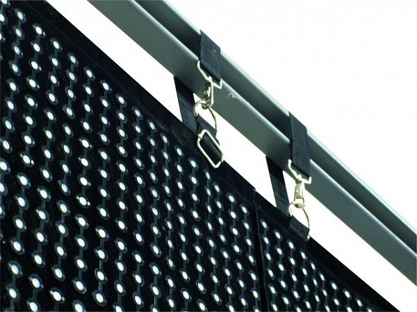 Ohebné LED zobrazovače (flexicurtain) a LED displayové závěsy či LED sítě jsou osazeny kvalitními a silnými TriColor RGB LED nebo SMD diodami s různými rozestupy LED diod. Dále se nabízí možnost modulárního rozšiřování do větších ploch, tvarování a přizpůsobení obrazovky, či závěsu díky hladkému ohebnému PVC materiálu se sníženou hořlavostí. Díky velmi nízké váze a možnosti tvarování je samozřejmostí rychlá a snadná instalace i na komplikovaných či neobvyklých místech převážně v interiéru. Ohebné LED závěsy lze použít v exteriéru jen podmínečně a to jednak kvůli krytí IP44 a pak také kvůli nižší svítivosti oproti klasickým obrazovkám.