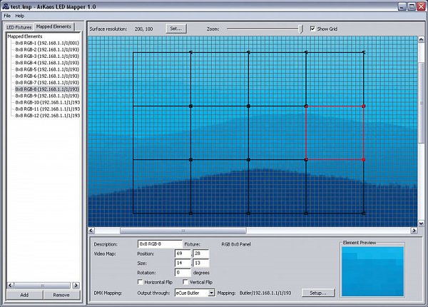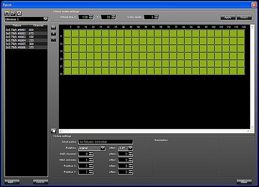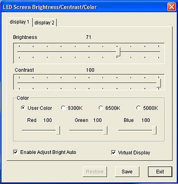 Každý program přehrávání může být v softwaru tvořen z více jak desítky funkcí od přehrávání souborů přes zobrazování, textů časomíry či teploty. Na ovládacím počítači běží vždy kontrolní okno, které zobrazuje stejný obraz jako LED obrazovka.